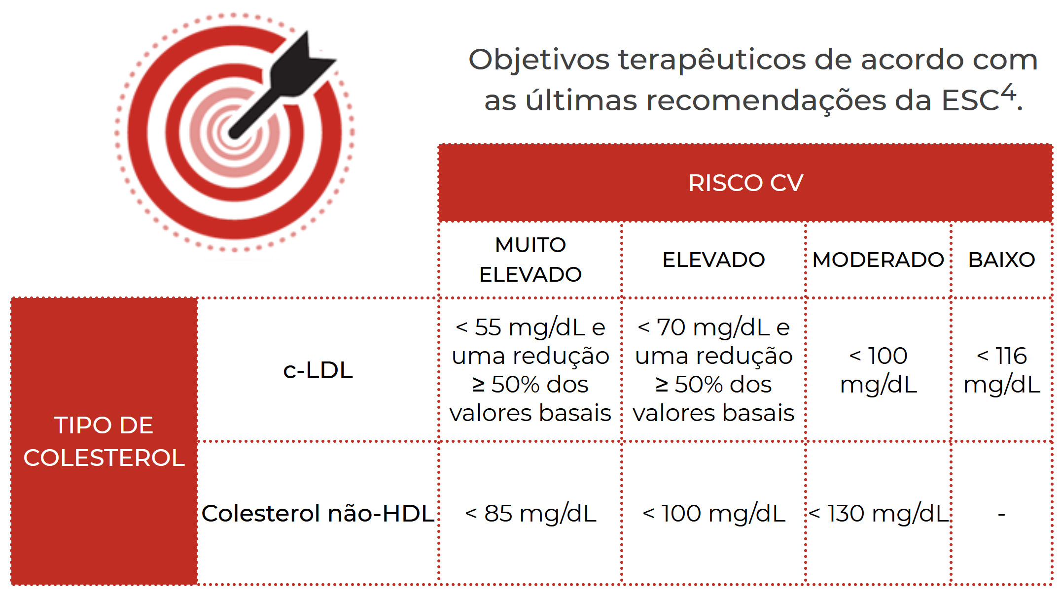 | Colesterol não-HDL | < 85 mg/dL | < 100 mg/dL | < 130 mg/dL | - | |